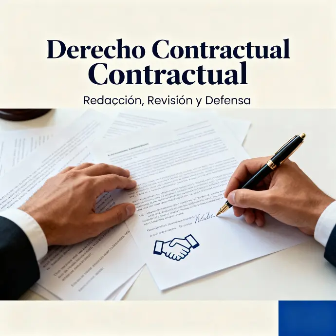 Redacción, negociación y revisión de todo tipo de contratos, convenios y acuerdos. Defensa ante incumplimientos contractuales y asesoramiento jurídico personalizado para evitar conflictos futuros.